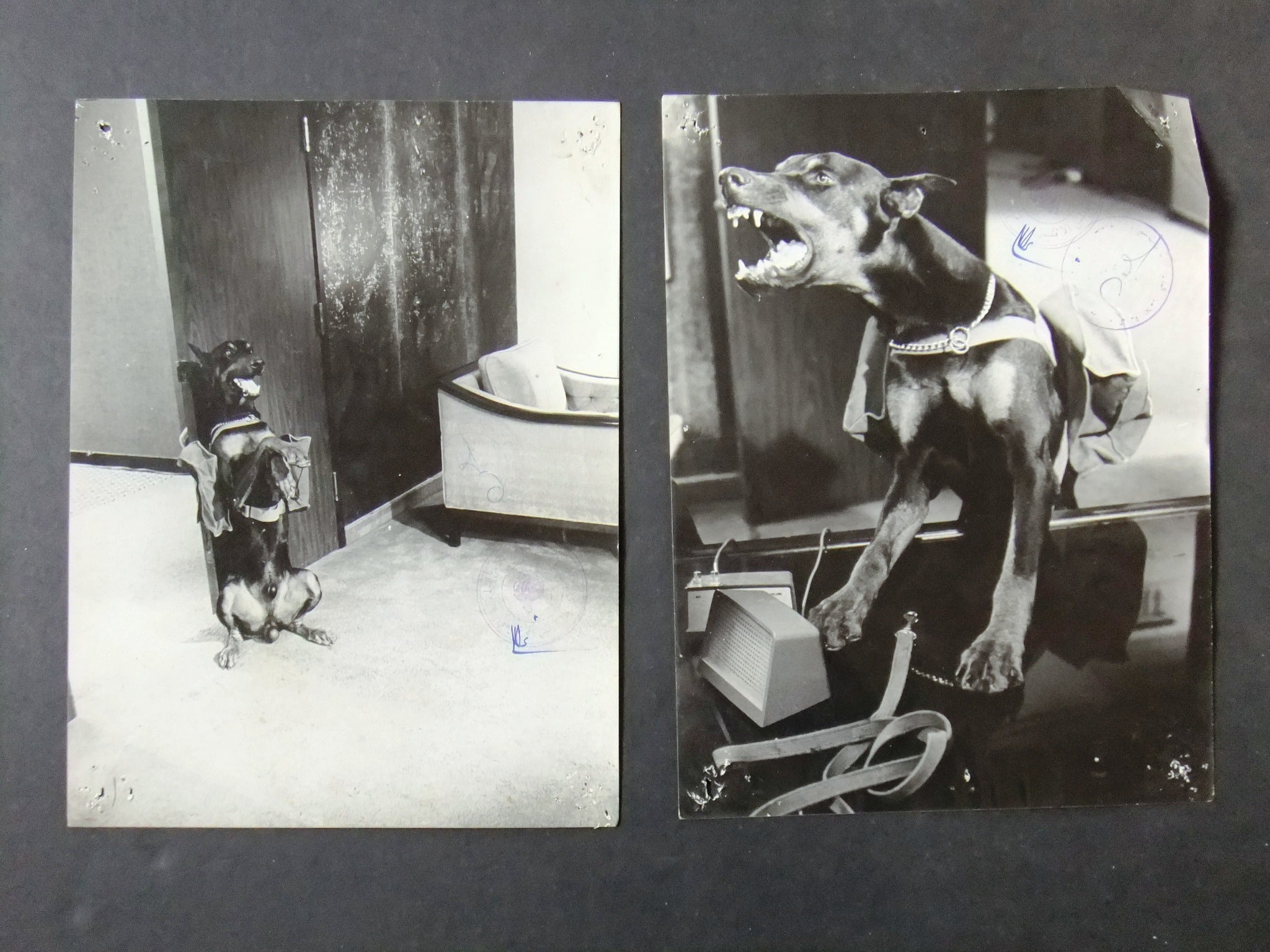 - Condition: Fair. Multiple pinholes and pinholes wear to corners. Heavily used. Paper loss to few photos edges. 2 censor stamps/signature on each photo. Adhesive tape to few photos edges. Stain also to few photos. Check images for details. No major tears.